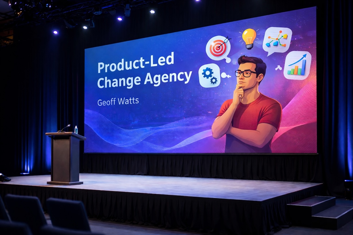 Leadership and agility coach Geoff Watts, who has spent 20 years supporting agile professionals, will explain that essential techniques from the world of product management are needed for any change effort to be successuful - whether you are leading this from the top or from within.